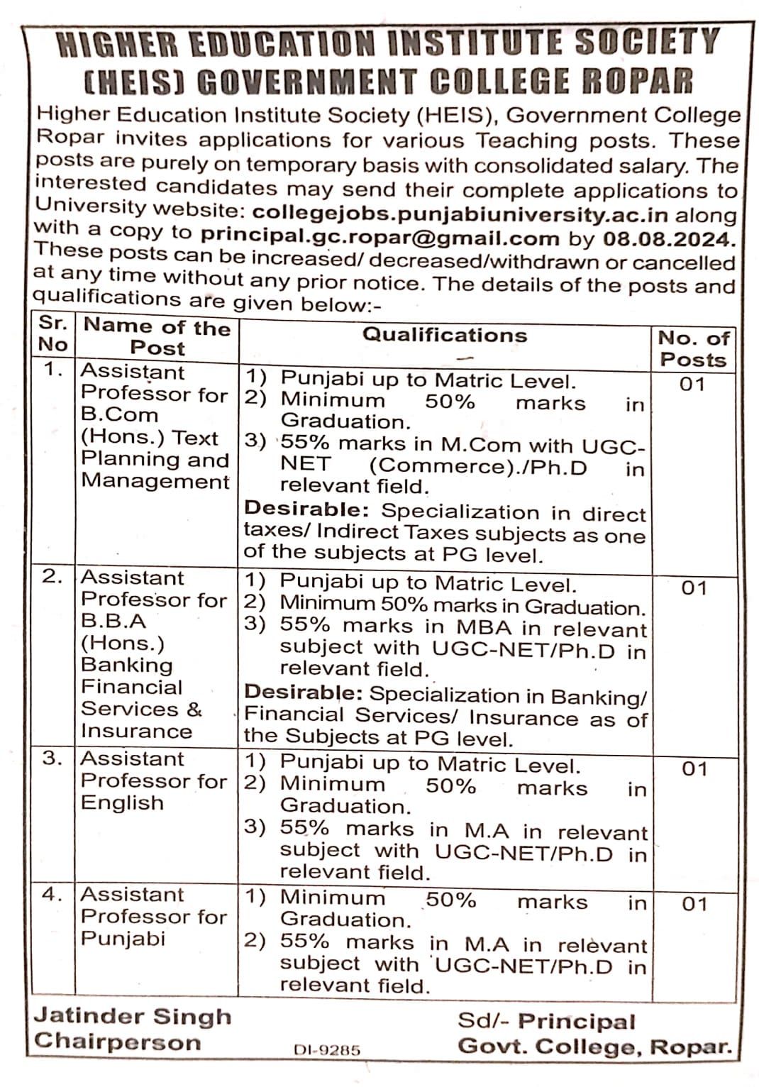 Principal, Govt. College, Ropar
