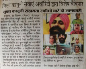 Webinar on Children Protection Scheme 2015 was held on 24.09.2020 under the chairmanship of CJM CUM Secretary S.Harsimranjit Singh DLSA Rupnagar.On this event he describes various schemes regarding children security and also enlighten the views of Swami Vivekanand ji that we all should have to be goal oriented.