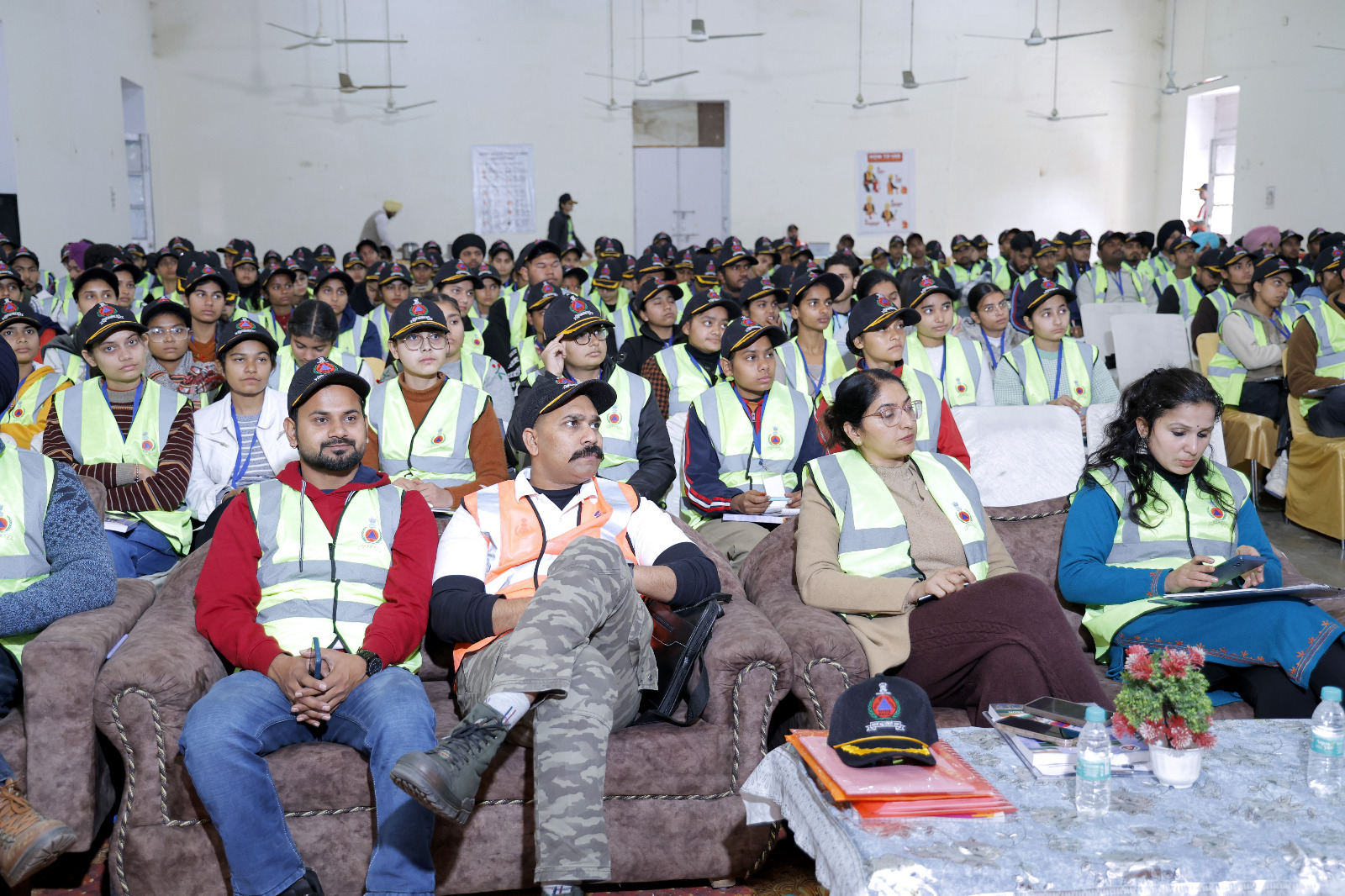 In the second session, practical training on CBRN was conducted. Volunteers were trained in detail on wearing CBRN protective kits, and a simulated dangerous zone was created on the ground to provide hands-on practical exposure.