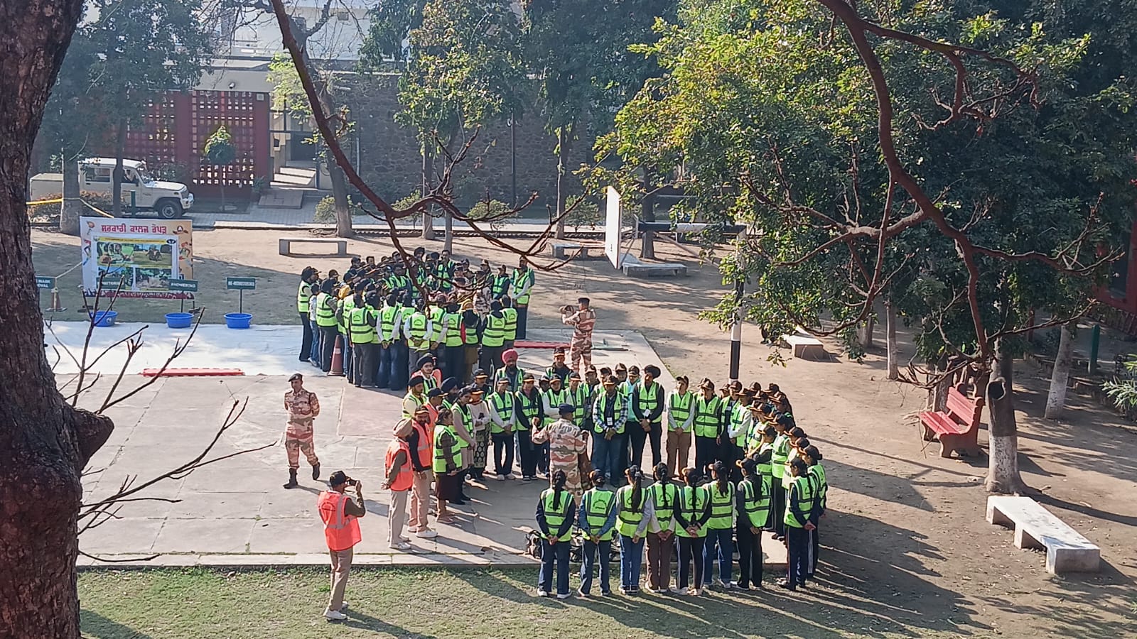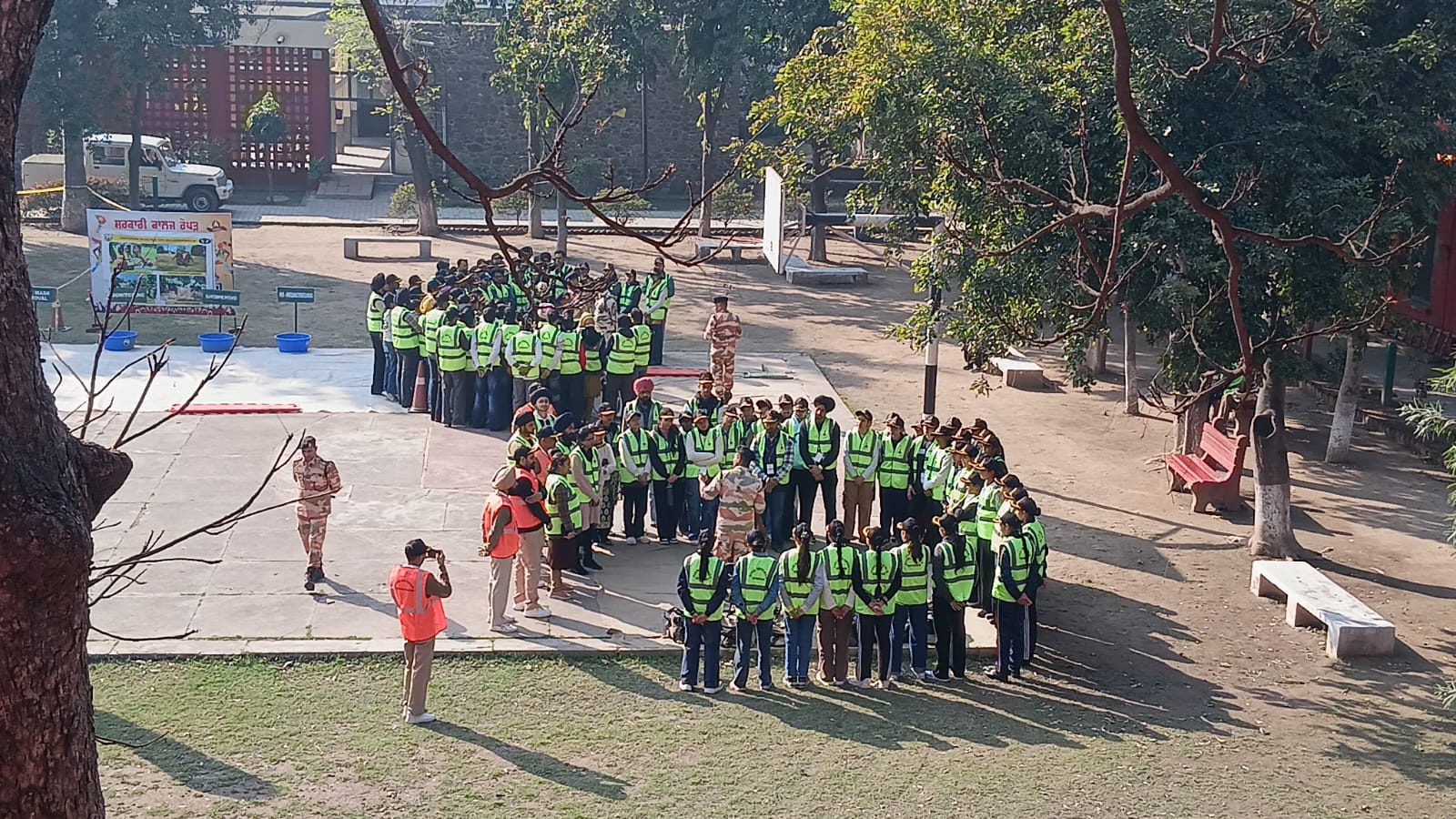 In the morning session, a motivational video on India’s Air Defence System was shown. This was followed by a CBRN lecture session conducted by the ITBP team, where volunteers were briefed about Chemical, Biological, Radiological and Nuclear (CBRN) hazards.