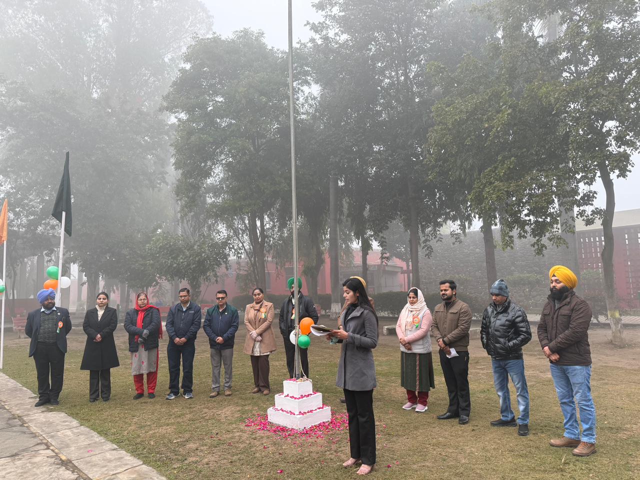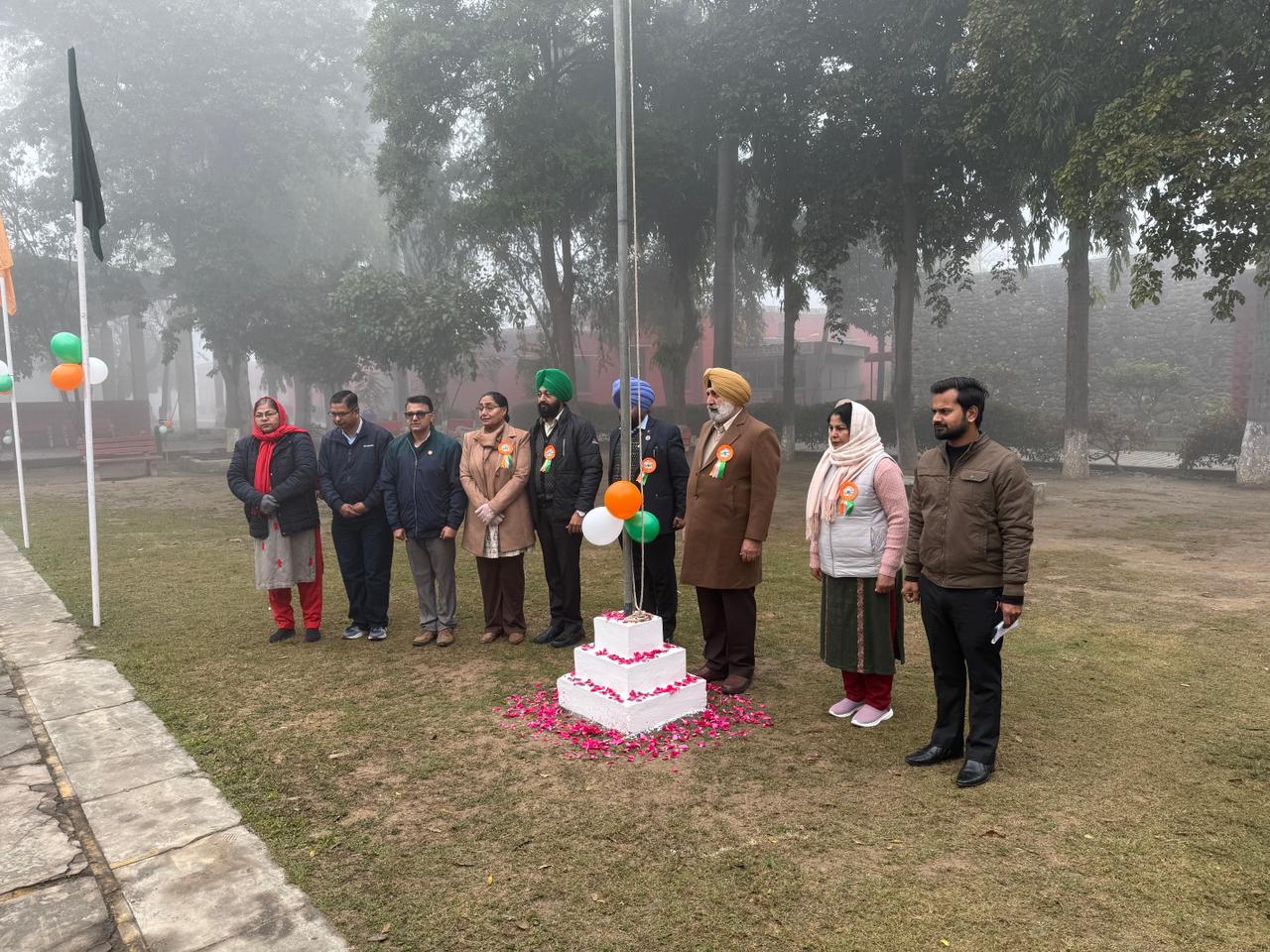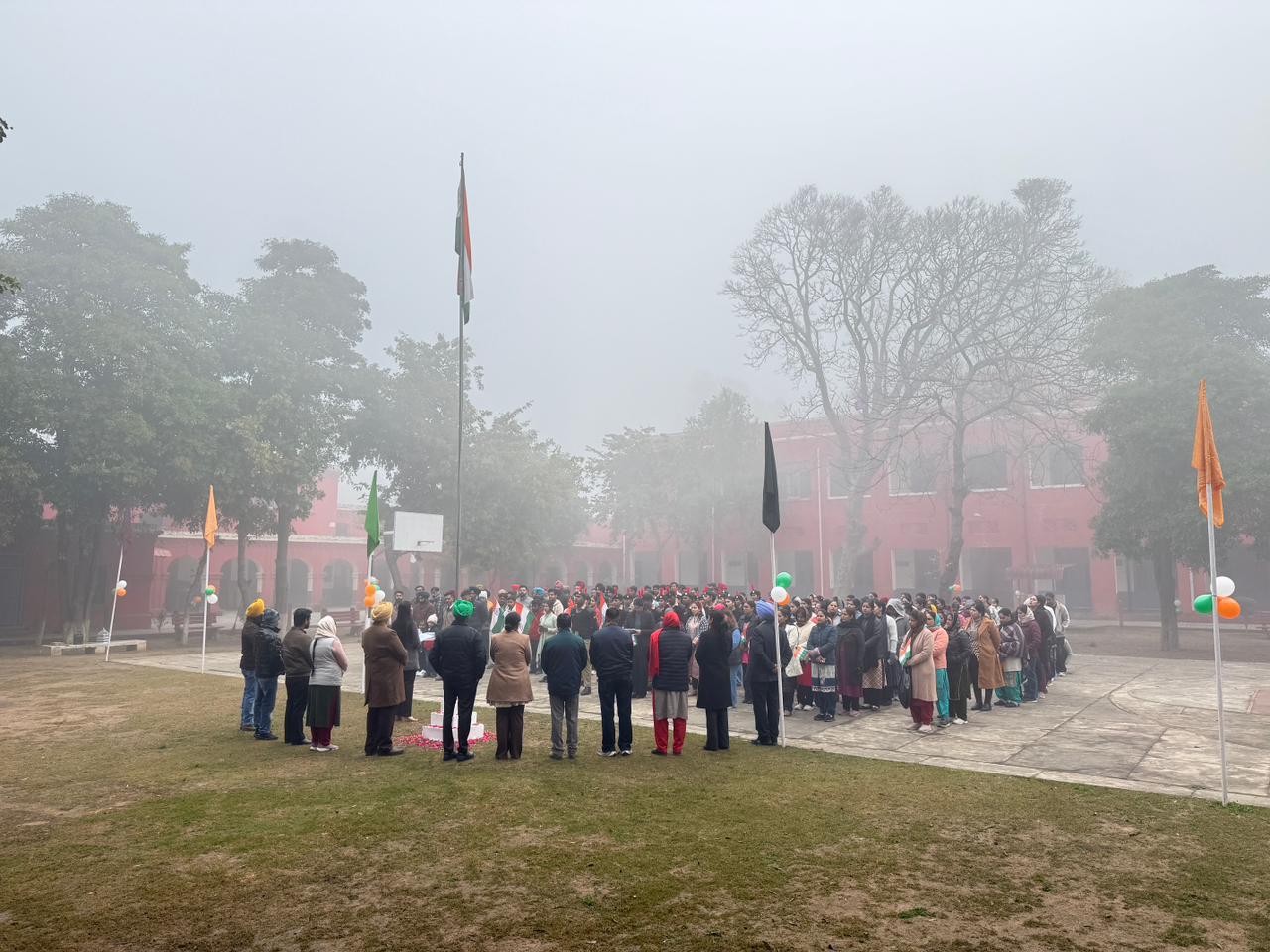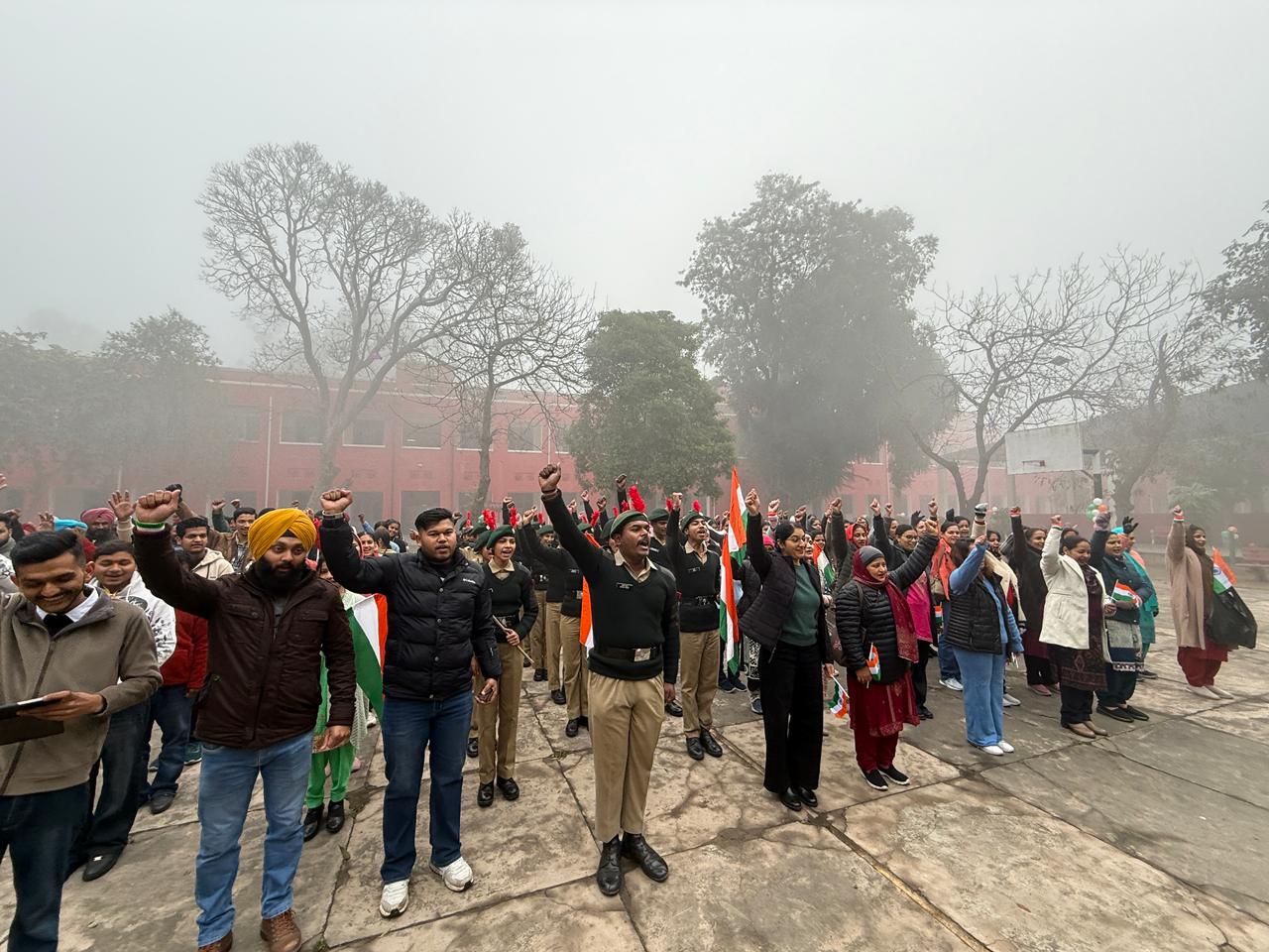 The celebration began with the hoisting of the national flag by the college Principal, S.Jatinder Singh amidst loud cheers and applause. The NCC cadets ,NSS Volunteers,Red Ribbon club volunteers,faculty and non teaching staff saluted the national flag, followed by the singing of the National Anthem.