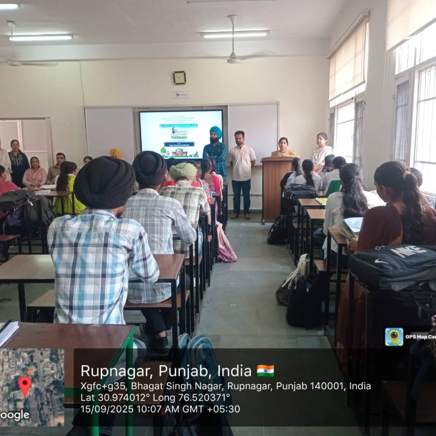 ਸਰਕਾਰੀ ਕਾਲਜ ਰੋਪੜ ਵਿੱਚ ਪ੍ਰਿੰਸੀਪਲ ਜਤਿੰਦਰ ਸਿੰਘ ਗਿੱਲ ਜੀ ਦੀ ਰਹਿਨੁਮਾਈ ਹੇਠ ਮਿਤੀ 01 ਤੋਂ 15 ਸਤੰਬਰ, 2025 ਨੂੰ ਪੰਜਾਬੀ ਯੂਨੀਵਰਸਟੀ ਪਟਿਆਲਾ ਅਤੇ ਏ.ਆਈ.ਸੀ.ਟੀ.ਈ ਵੱਲੋਂ ਪ੍ਰਾਪਤ ਹਦਾਇਤਾਂ ਅਨੁਸਾਰ ਕਾਲਜ ਦੇ ਐੱਚ.ਈ.ਆਈ.ਐੱਸ. (ਸੈਲਫ ਫਾਇਨਾਂਸ) ਵਿਭਾਗ ਦੁਆਰਾ ਸਵੱਛਤਾ ਪਖਵਾੜਾ ਦਿਵਸ ਮਨਾਇਆ ਗਿਆ। ਐਚ.ਈ.ਆਈ.ਐੱਸ. ਵਿਭਾਗ ਦੇ ਮੁਖੀ ਪ੍ਰੋ. ਜੁਪਿੰਦਰ ਕੌਰ ਨੇ ਕਾਲਜ ਦੇ ਵਾਈਸ ਪ੍ਰਿੰਸੀਪਲ ਪ੍ਰੋ. ਹਰਜੀਤ ਸਿੰਘ, ਕਾਲਜ ਕੌਂਸਲ ਮੈਂਬਰ ਪ੍ਰੋ. ਮੀਨਾ ਕੁਮਾਰੀ ਅਤੇ ਵੱਖ-ਵੱਖ ਵਿਭਾਗਾਂ ਤੋਂ ਆਏ ਪ੍ਰੋਫੈਸਰ ਸਾਹਿਬਾਨ ਅਤੇ ਵਿਦਿਆਰਥੀਆਂ ਦਾ ਸਵਾਗਤ ਕੀਤਾ। ਐੱਚ.ਈ.ਆਈ.ਐੱਸ. ਦੇ ਸਕੱਤਰ ਪ੍ਰੋ. ਸ਼ਮਿੰਦਰ ਕੌਰ ਦੁਆਰਾ ਵਾਤਾਵਰਣ ਦੀ ਮਹੱਤਤਾ ਬਾਰੇ ਵਿਸਥਾਰ ਪੁਰਵਕ ਚਾਨਣਾਂ ਪਾਇਆ। ਇਸ ਪ੍ਰੋਗਰਾਮ ਅਧੀਨ ਸਵੱਛਤਾ ਵਾਤਾਵਰਨ ਸਬੰਧੀ Short Essay on traditional environment friendly practices, E-poster making ਪ੍ਰਤੀਯੋਗਤਾ ਕਰਵਾਈ ਗਈ। ਇਸ ਪ੍ਰੋਗਰਾਮ ਵਿੱਚ ਵਾਈਸ ਪ੍ਰਿੰਸੀਪਲ ਪ੍ਰੋ. ਹਰਜੀਤ ਸਿੰਘ ਨੇ ਵੱਖ-ਵੱਖ ਪ੍ਰਤੀਯੋਗਤਾਵਾਂ ਵਿੱਚ ਭਾਗ ਲੈਣ ਵਾਲੇ ਵਿਦਿਆਰਥੀਆਂ ਦੀ ਹੌਂਸਲਾ ਅਫਜਾਈ ਕੀਤੀ ਅਤੇ ਵਧੀਆ ਭਵਿੱਖ ਲਈ ਸਵੱਛਤਾ ਦੀ ਮਹੱਤਤਾ ਨੂੰ ਸਮਝਣ ਲਈ ਸੁਝਾਅ ਦਿੱਤੇ।